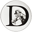 Уникальная тарелка Alfabeto D изготовлена из высококачественного белого фарфора. По краю тарелки проходит тонкая окантовка, дно украшено оригинальным рисунком в виде буквы D, с выглядывающей из неё головой скаковой лошади в котелке. Тарелка декорирована весьма элегантно и заслуживает внимания покупателей.