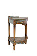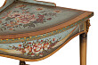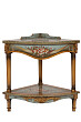 Угловая консоль Montpellier отлично подойдет для аристократического дома или для спальни юной принцессы. Консоль имеет необычную форму, при этом она идеально подходит для того, чтобы установить её в углу. Консоль сделана из МДФ нежно-голубого цвета в состаренной технике. Ножки консоли выполнены из натурального дерева (берёза) в светло-коричневом цвете. На столешницах и по бокам присутствует затейливая роспись в цветочной тематике.