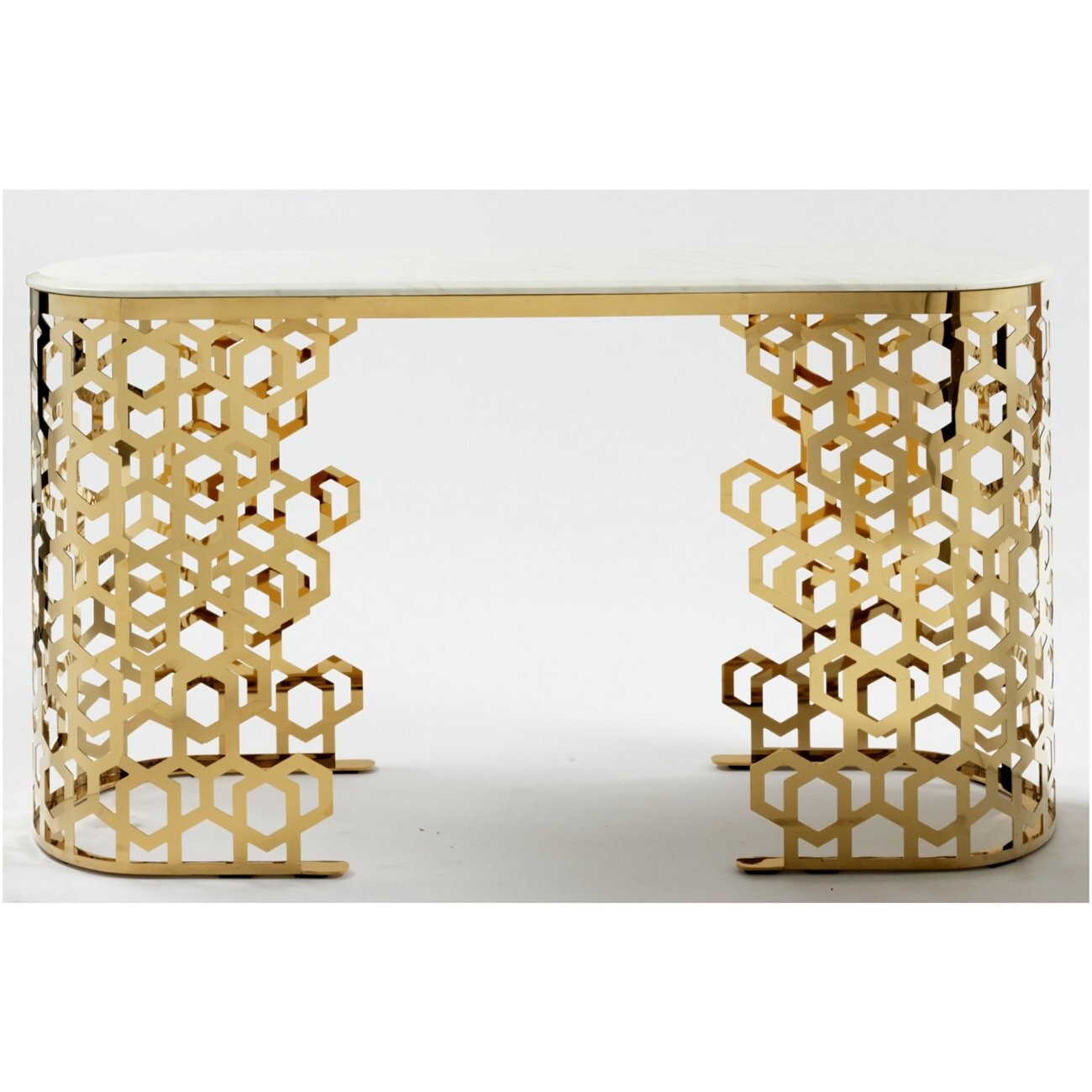 Дизайнерская консоль: Консоль с белой мраморной столешницей "Золотые соты"