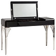 Туалетный столик — это вещь, которая пригодится каждой женщине. На таком столике можно расставить всю косметику и другие красивые и приятные вещи, и тогда это будет идеальное место для создания красивого образа каждый день! Туалетный столик Triangl Black One — идеальный стол для почитательниц любого стиля. Этот предмет мебели станет украшением комнаты прекрасной леди, и у вас будет все под рукой для того, чтобы нанести макияж и сделать прическу. Стол выполнен в черном цвете, на столешнице имеется откидное зеркало, а внутри — отделения для мелочей. Ножки стола выполнены в серебристом цвете и украшены резьбой сверху.