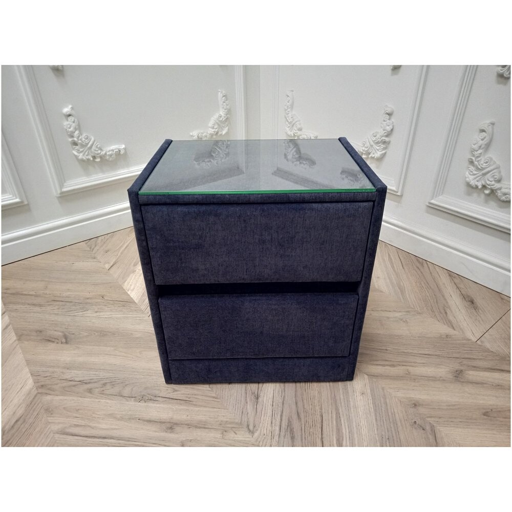 Прикроватная тумбочка со стеклом и двумя ящиками серо-синяя Encanto Velvet Lux - изображение 2