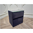 Прикроватная тумбочка со стеклом и двумя ящиками серо-синяя Encanto Velvet Lux