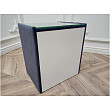 Мягкая тумба без ножек, со стеклянной столешницей и двумя ящиками плавного открывания отлично впишется в любой интерьер как спальни, так и гостинной.