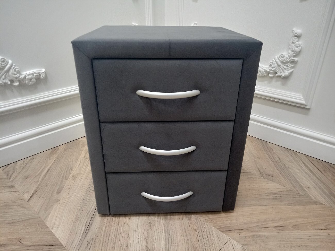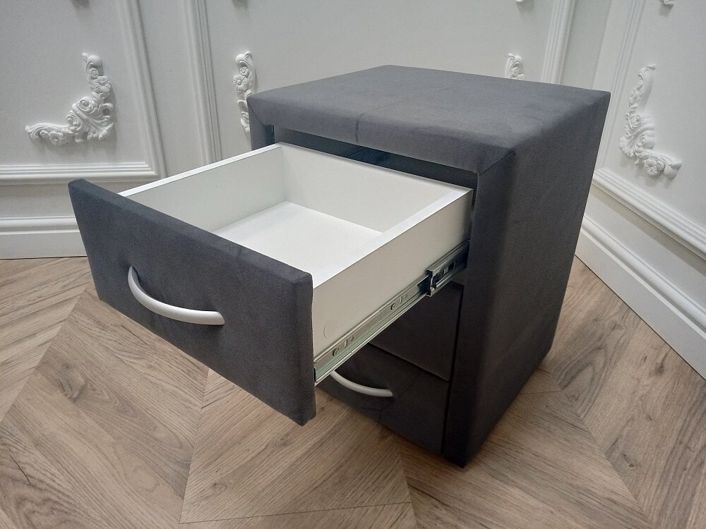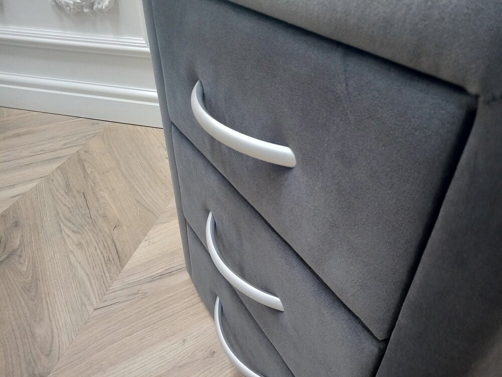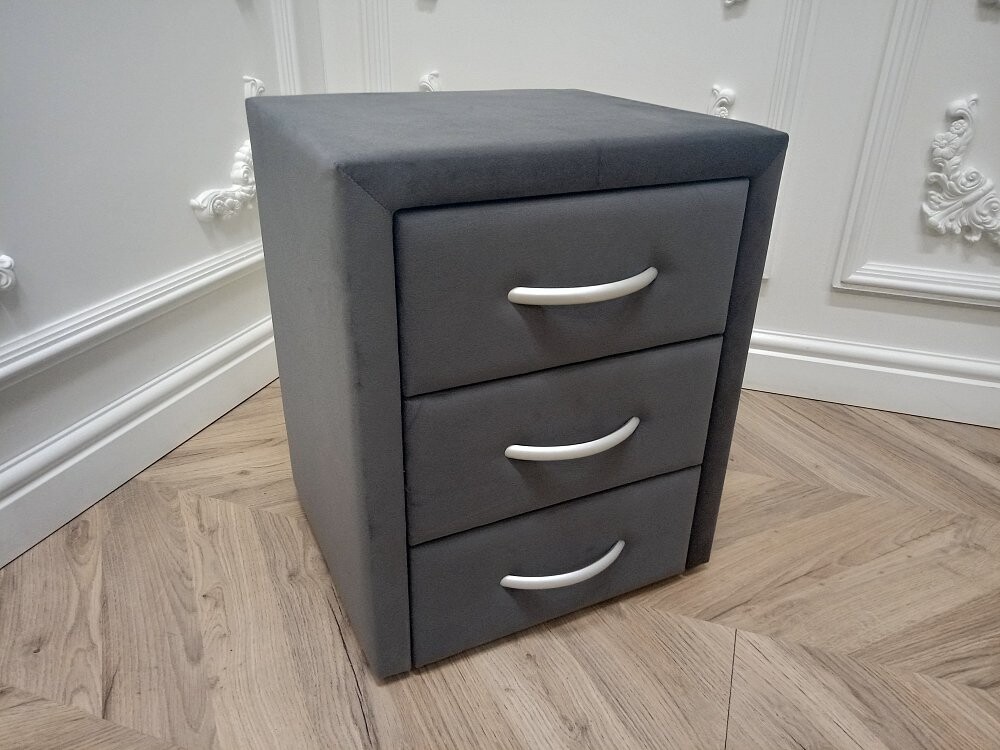 Прикроватная тумбочка из гладкого микровелюра всегда в тренде. Вместительные ящики открываются и закрываются плавно, не стучат. Дополните такой красотой свою спальню или гостинную и Вы увидите как стало уютно.