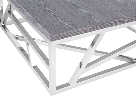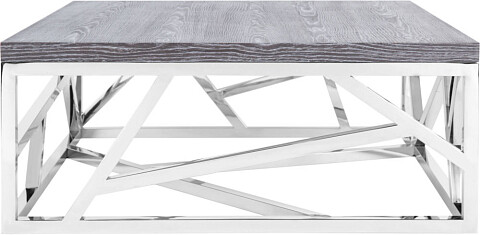 Журнальный столик квадратный серый с фигурным основанием хром Geometric