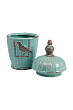 Декоративная ваза Zoltan из керамики светло-зелёного цвета, с удобной крышкой, стилизована под старину. Ваза выполнена в виде клетки, с рельефным изображением птички, сидящей на перекладине. Весьма емкая ваза может выполнять как  хозяйственные функции, так и стать отличным дополнением интерьера вашего дома.