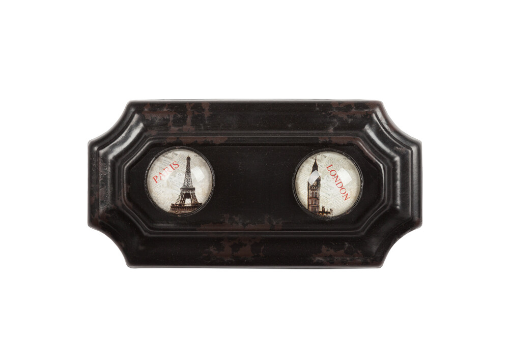 Настенные крючки Eloise (коричневые) — элегантная композиция в виде панно, изготовлена из металла, декорирована рисунками достопримечательностей Парижа и Лондона с преобладанием коричневого цвета. Этот настенный аксессуар подойдёт к любому стилю интерьера.