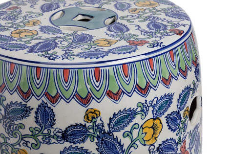 Табурет круглый керамический белый с росписью Garden Stool Ermitage