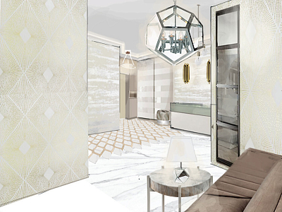 Холл в современном стиле с акварелями