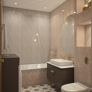 Интерьер ванной в неоклассике, проект «Ванная комната "Царство мрамора"» №3