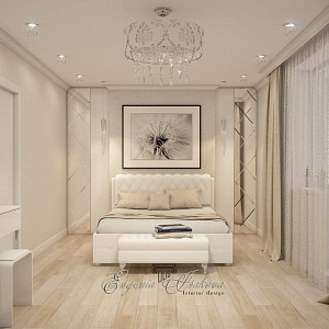 Интерьер спальни в классическом стиле и в современном стиле, проект «Современная спальня в светлых тонах» №3
