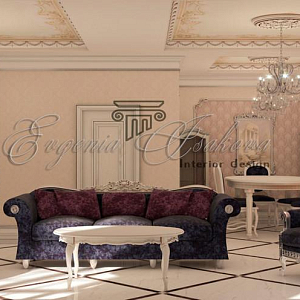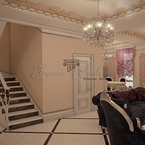 Интерьер гостиной в классическом стиле, проект «Частный дом в стиле барокко» №12