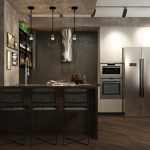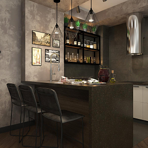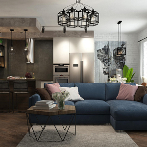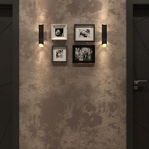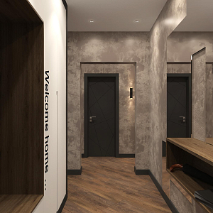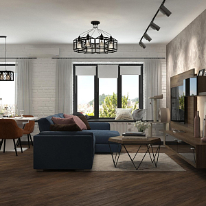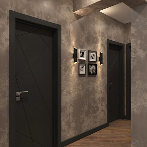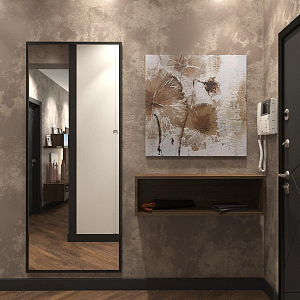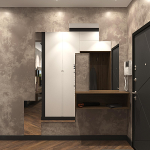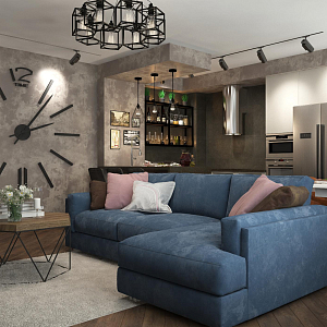 Интерьер гостиной с панно за телевизором, стеной с телевизором, телевизором на стене, нишей для телевизора, керамогранитом на стену с телевизором и подсветкой настенной, проект «Квартира в Самаре, Квартира» №19