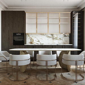 Интерьер спальни с панно за телевизором, стеной с телевизором и керамогранитом на стену с телевизором, проект «Квартира в Royal Park, » №2