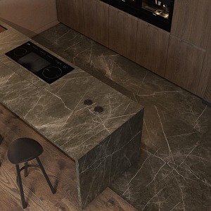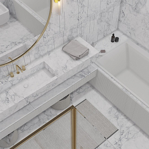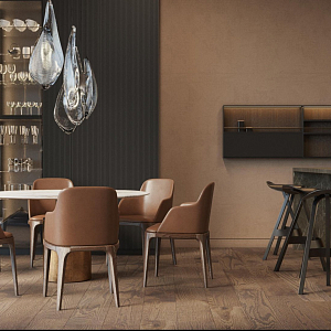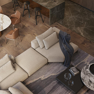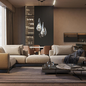 Интерьер с панно за телевизором, стеной с телевизором, телевизором на рейках, телевизором на стене и керамогранитом на стену с телевизором, проект «Квартира в Сити, Квартира» №4