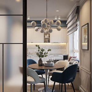 Интерьер кухни cветовыми линиями, проект «Современная интерпретация стиля прованс. Кухня Санкт-Петербург м. Фрунзенская, Комната» №7