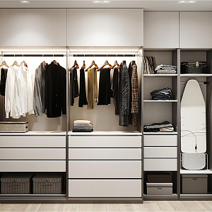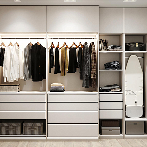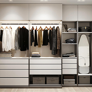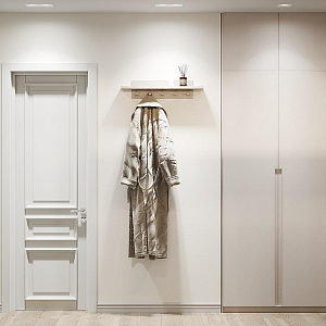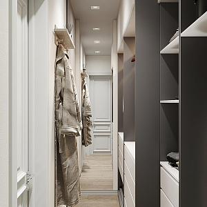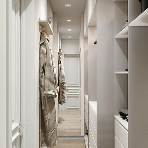 Интерьер прихожей с гардеробной, проходной и гардеробной со шторой, проект «Гардеробная с продуманным хранением в двух вариантах г. Санкт-Петербург м. Фрунзенская, Комната» №1