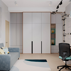 Интерьер c рабочим местом в современном стиле, проект «Комната школьника в КП Заповедник» №1
