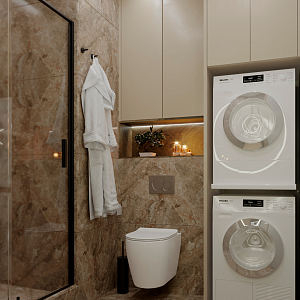 Интерьер ванной в современном стиле, проект «Компактная и стильная ванная с красивой подсветкой» №2