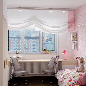 Интерьер детской в современном стиле, проект «Детская для 2-ух девочек» №5