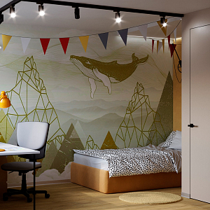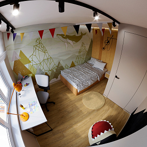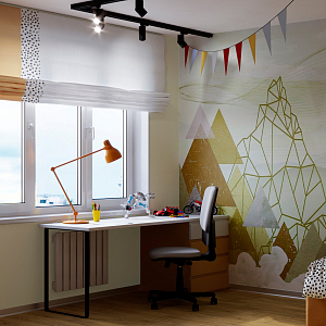 Интерьер детской c рабочим местом в современном стиле, проект «Яркая комната для школьника» №5