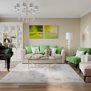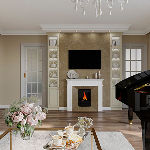 Интерьер гостиной в современном стиле, проект «Коттедж в Карасьеозерске2» №4