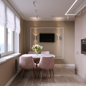 Интерьер кухни cветовыми линиями, рейками с подсветкой, подсветкой настенной и подсветкой светодиодной в современном стиле, проект «Кухня в ЖК Ольховский Парк» №2