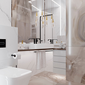 Интерьер ванной в современном стиле, проект «Ванная с красивым камнем» №2