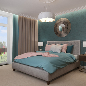 Интерьер спальни c рабочим местом в неоклассике, проект «Интерьер спальни в ЖК "Ольховский парк"» №1