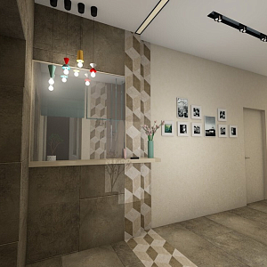 Интерьер гостиной с подсветкой светодиодной и световыми линиями в модернизме, проект «Коттедж "Райский сад"» №1