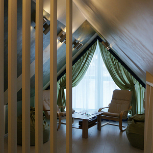 Интерьер в современном стиле, проект «Интерьер мансарды "Романтика оливкового и лилового".» №7