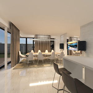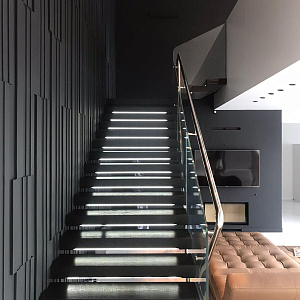 Интерьер гостиной с подсветкой настенной, подсветкой светодиодной и с подсветкой, проект «День и ночь пос. Рыбацкий Ульяновск 530 кв.м., Коттедж» №12