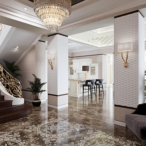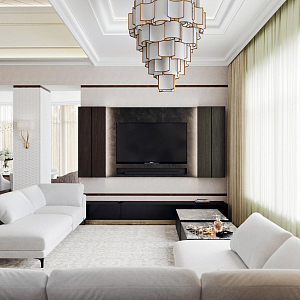 Интерьер гостиной с подсветкой настенной, подсветкой светодиодной, с подсветкой и световыми линиями, проект «Многоликий модерн Ленинский р-н Ульяновск 200 кв.м., Частный дом» №28
