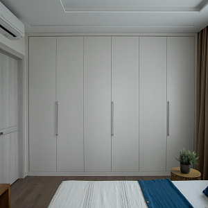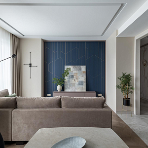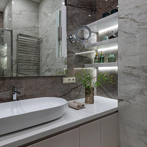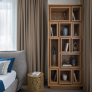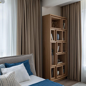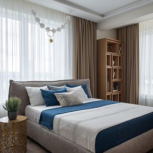 Интерьер спальни с подсветкой настенной, подсветкой светодиодной, светильниками над кроватью и световыми линиями в современном стиле, проект «Квартира 111 м2 в современном стиле в ЖК "City Park"» №13