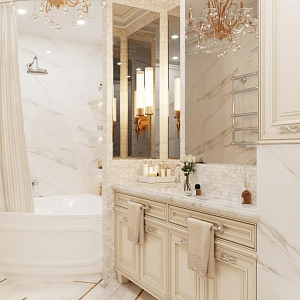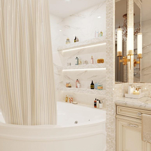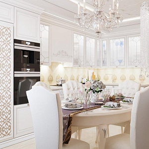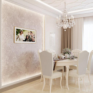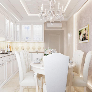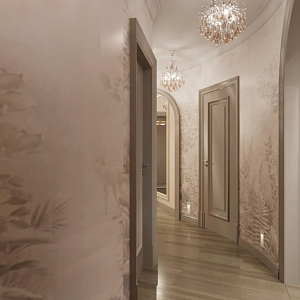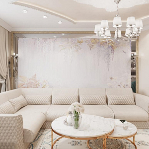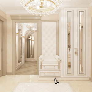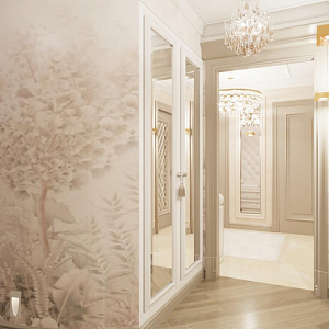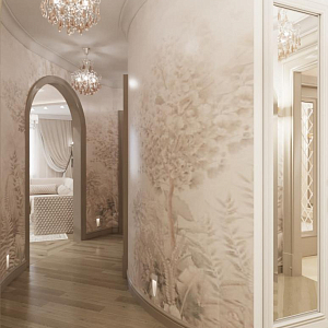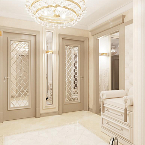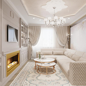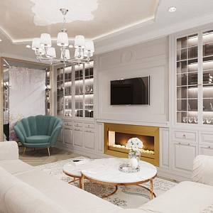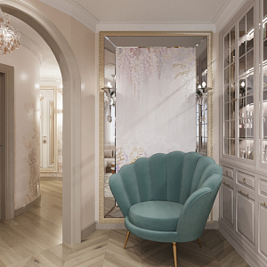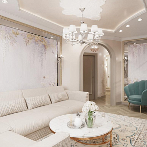 Интерьер гостиной с аркой, каретной стяжкой и проходной в барокко, в восточном стиле, неоклассике и рококо, проект «4-х комнатная квартира в стиле неоклассики в ЖК "Зеленые аллеи"» №30