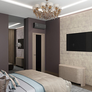 Интерьер коридора cветовыми линиями, рейками с подсветкой, подсветкой настенной и подсветкой светодиодной в неоклассике, проект «Квартира в стиле неоклассики в ЖК "Vander Park"» №16