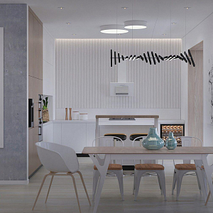 Интерьер гостиной cветовыми линиями, рейками с подсветкой, подсветкой настенной и подсветкой светодиодной в современном стиле, проект «Таунхаус в современном стиле в Самаре» №6
