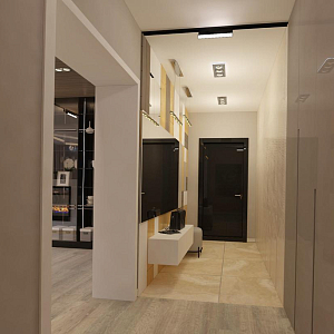 Интерьер ванной cауной, рейками с подсветкой, подсветкой настенной, подсветкой светодиодной и с подсветкой в современном стиле, проект «Квартира в современном стиле "Апартаменты для молодых и успешных"» №6