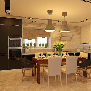 Интерьер с двухуровневыми, проходной, гостиной-прихожей, лестницей, с антресолью, под лестницей и порогом в современном стиле, проект «Дом в современном стиле для молодой семьи» №5