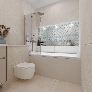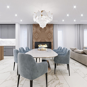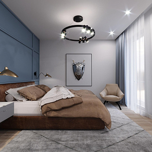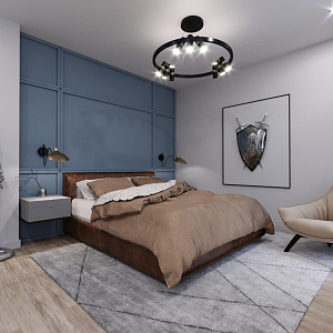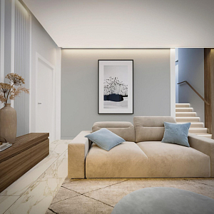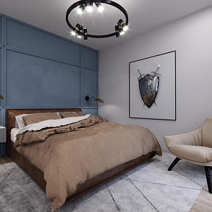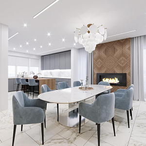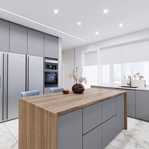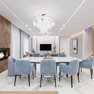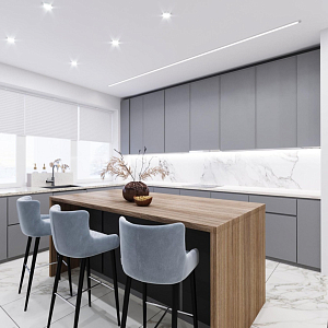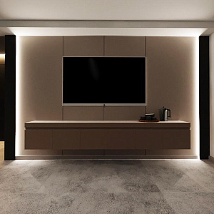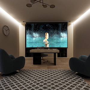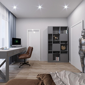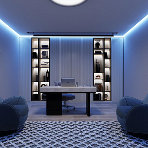 Интерьер кабинета с нишей с подсветкой, подсветкой настенной, подсветкой светодиодной, рейками с подсветкой, с подсветкой, с рабочим местом и световыми линиями в современном стиле, проект «Современный коттедж в Новопокровском» №2