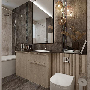 Интерьер ванной в современном стиле и в стиле лофт, проект «Большой светлый дом в деревне Гремячки» №15