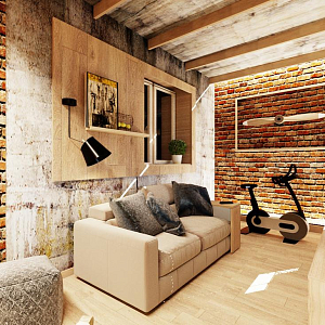 Интерьер спальни в стиле лофт, проект «Комната отдыха для мужчины» №3