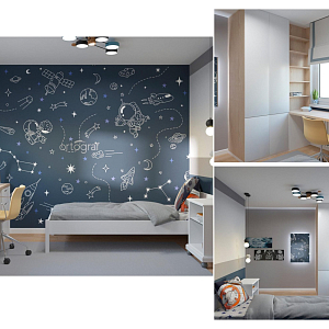 Интерьер c рабочим местом, световыми линиями, с антресолью, подсветкой светодиодной и с подсветкой в скандинавском стиле, проект «3-х комнатная квартира в скандинавском стиле в ЖК "Солнце парк"» №8