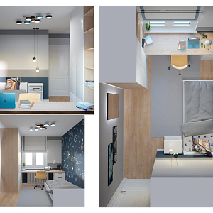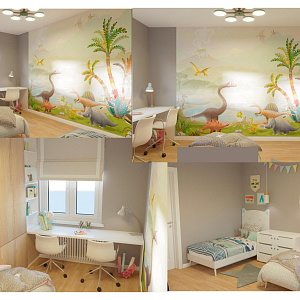 Интерьер детской с подсветкой настенной, подсветкой светодиодной и с подсветкой в скандинавском стиле, проект «3-х комнатная квартира в скандинавском стиле в ЖК "Солнце парк"» №13