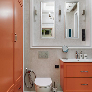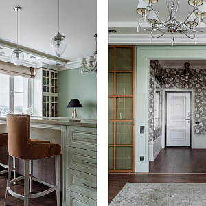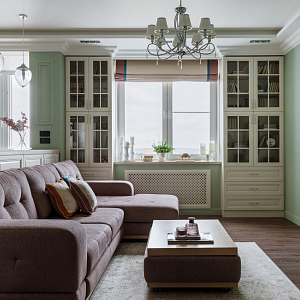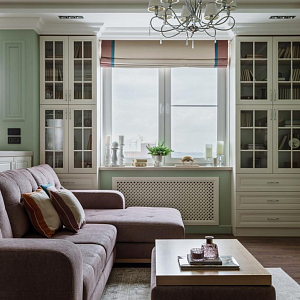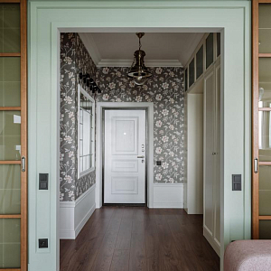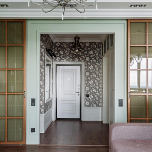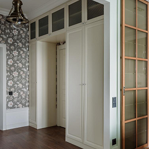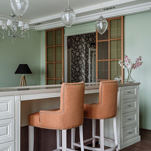 Интерьер с рейками с подсветкой, подсветкой настенной и подсветкой светодиодной в классическом стиле, проект «Квартира в классическом стиле для взрослой семейной пары» №16