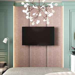 Интерьер спальни cветильниками над кроватью в современном стиле, проект «Квартира в современном стиле "Десертное послевкусие"» №5