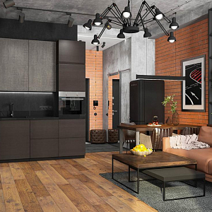 Интерьер гостиной в стиле лофт, проект «Квартира в стиле лофт "Loft Garden"» №12