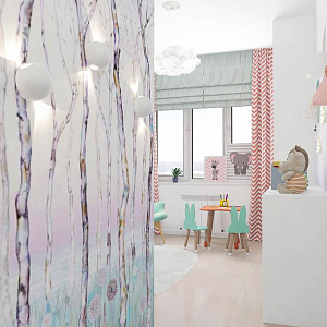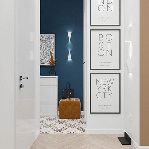 Интерьер коридора с нишей с подсветкой, световыми линиями, рейками с подсветкой, подсветкой настенной и подсветкой светодиодной в современном стиле, проект «Квартира в современном стиле "Яркий Питерский"» №12