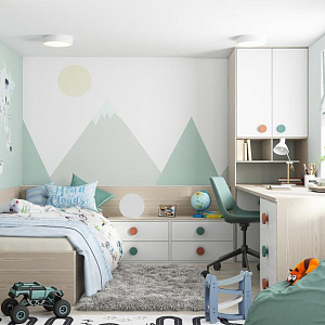 Интерьер детской c рабочим местом и с детской в современном стиле, проект «Квартира в современном стиле "Солнце в горах"» №7