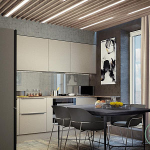 Интерьер прихожей с зонированием рейками, вертикальными жалюзи, рейками с подсветкой и порогом в современном стиле, проект «Квартира в современном стиле в темных тонах для мужчины» №8